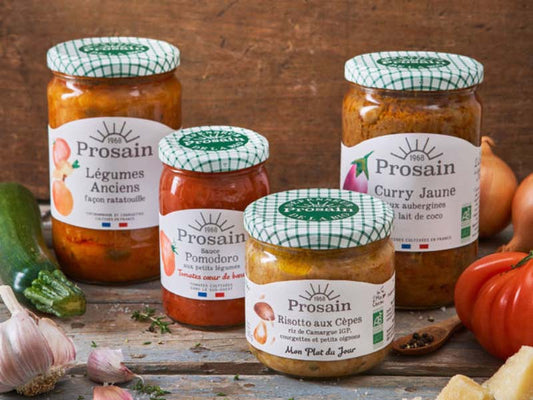 Depuis plus de 50 ans, Prosain défend la bio et rêve d’un monde meilleur, plus respectueux de la terre et des hommes. Parce que l’utilisation de pesticides et d’engrais chimiques de synthèse n’est pas seulement nuisible à l’environnement et à l’homme, mais aussi parce qu’elle dénature le goût des ingrédients et des produits… Prosain a fait le choix d’une agriculture responsable et biologique, qui respecte les ingrédients, depuis la récolte jusque dans les ateliers de la conserverie.